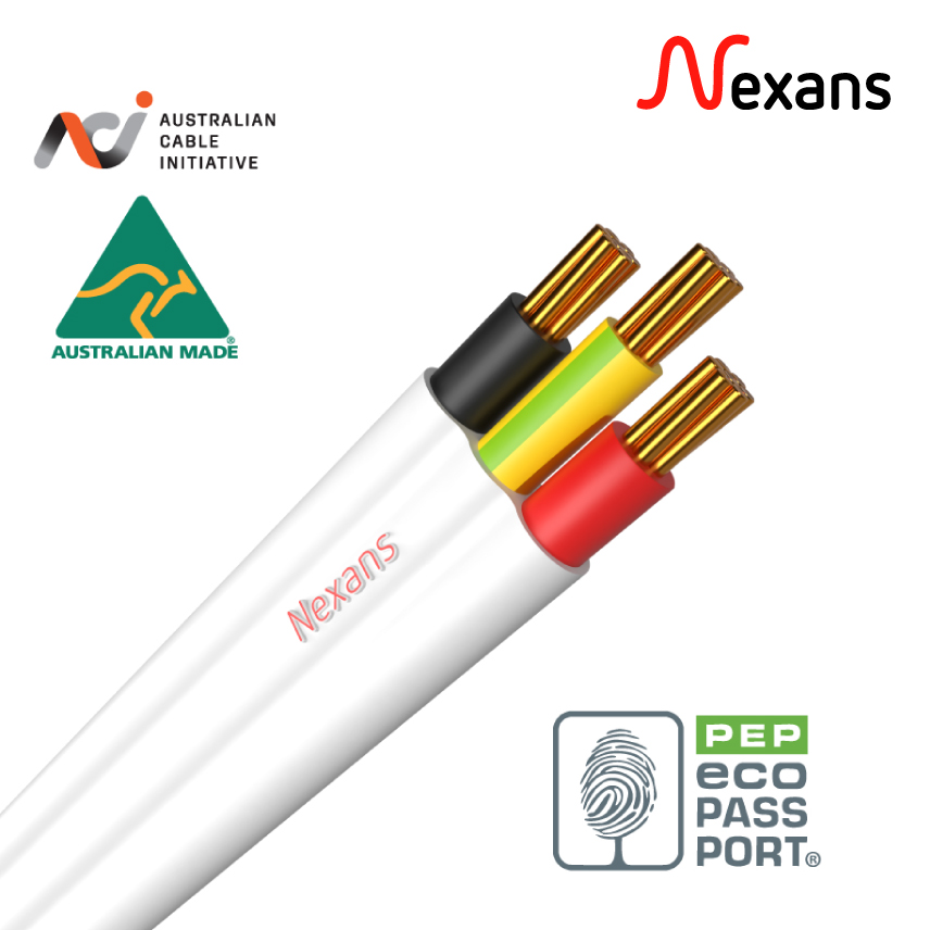 2.5mm 2C&E Flat White 100m, 2.5 mm² Conductor cross-section, 12.2 x 5.4 Nominal overall diameter