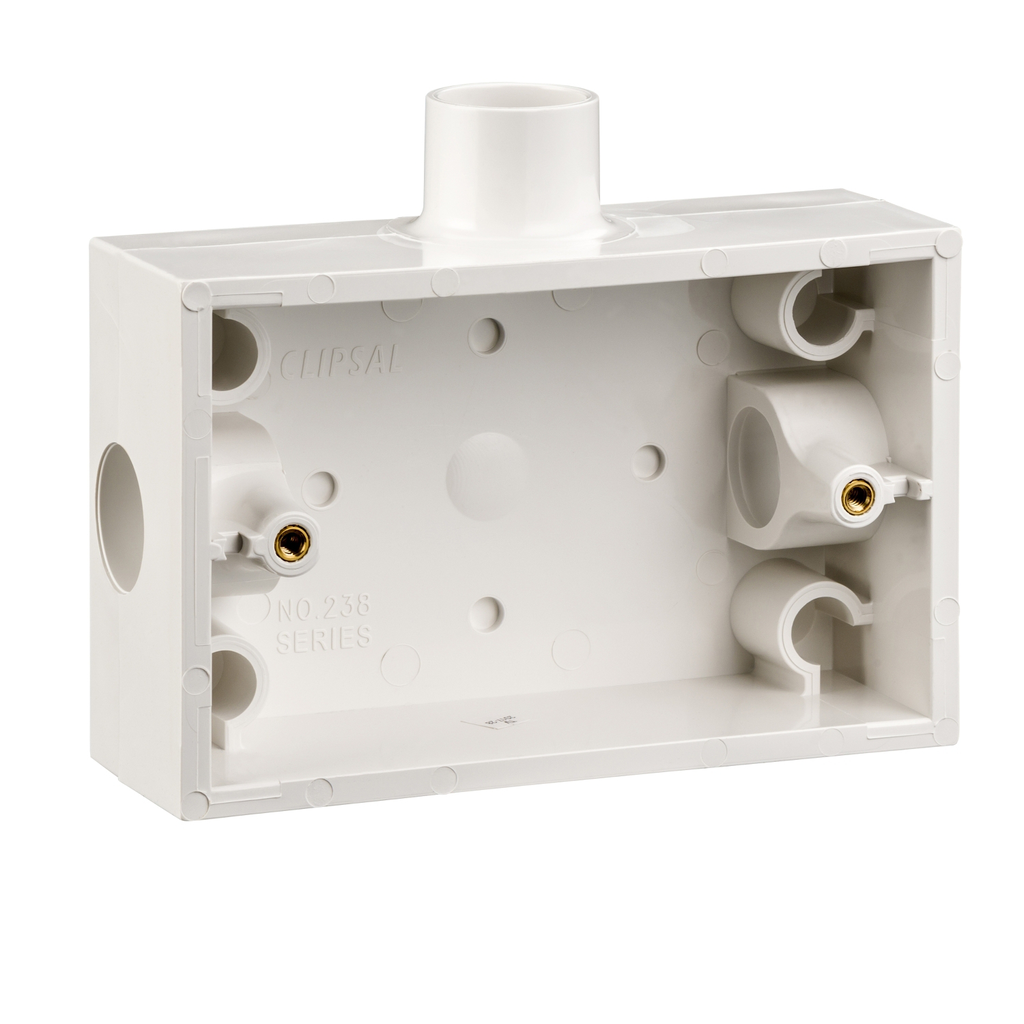 The BOX MOUNTING PVC RECT 3 ENT has a part number of 238A-WE, and is part of the Clipsal – Mounting Accessories range of products by Clipsal by Schneider Electric. Measuring at 70MM tall, 36MM wide, 116MM deep, and has a weight of 140G. The barcode of this product is 9311554075330.