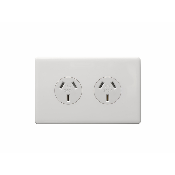 Excel Life – Dedicated plate – Horizontal double powerpoint autoswitch 2 gang 10A 240V a.c. white