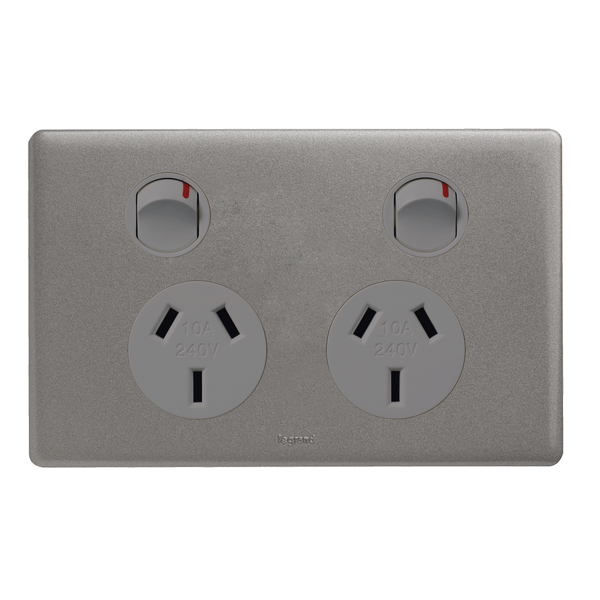 Excel Life – Dedicated plate – Horizontal double powerpoint 2 gang 10A 240V a.c. urban grey
