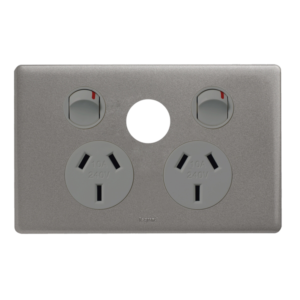 Excel Life – Dedicated plate – Horizontal double powerpoint 2 gang 10A 240V a.c. with extra function hole urban grey
