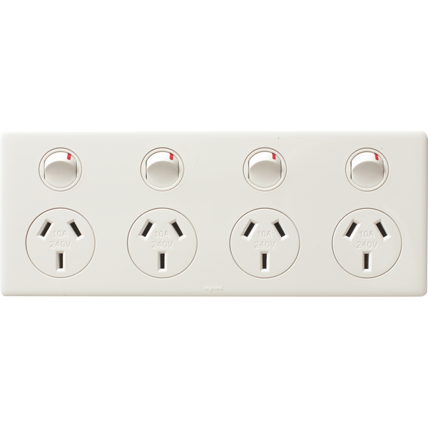 Excel Life – Dedicated plate – Horizontal 4 Gang powerpoint 4 gang 10A 240V a.c. white