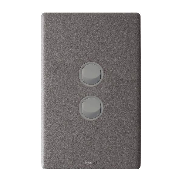 Excel Life – Dedicated plate – Vertical rocker switch – 16AX 2 way single Pole Double Throw – 2 gang – 240V a.c. urban grey