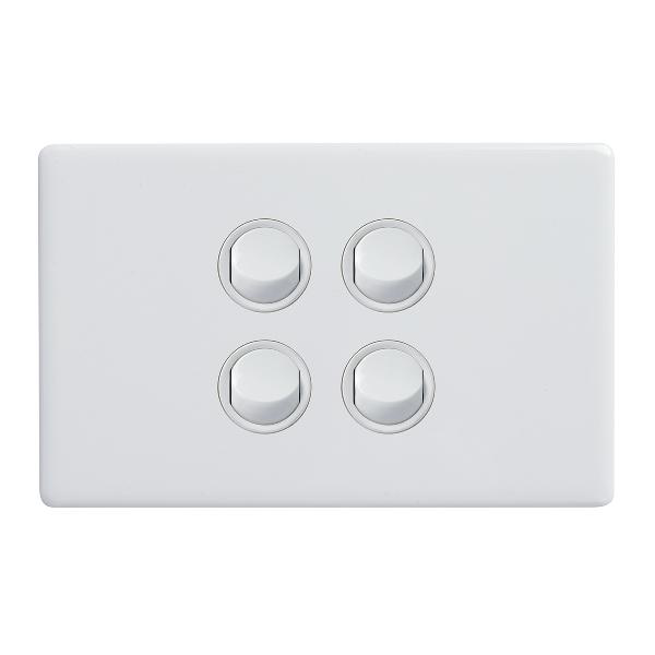 Excel Life – Dedicated plate – Horizontal rocker switch – Single Pole Double Throw – 4 gang – 240V a.c. white