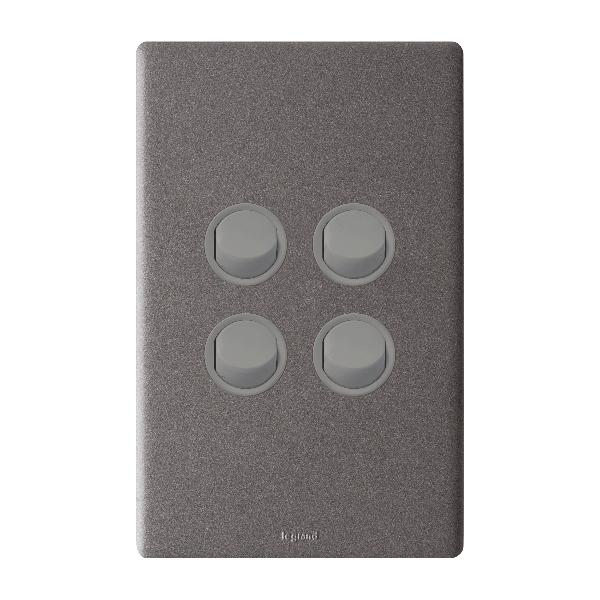 Excel Life – Dedicated plate – Vertical rocker switch – 16AX 2 way single Pole Double Throw – 4 gang – 240V a.c. urban grey