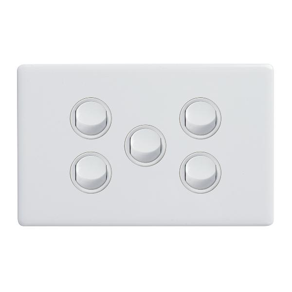 Excel Life – Dedicated plate – Horizontal rocker switch – Single Pole Double Throw – 5 gang 16AX 240V a.c. white