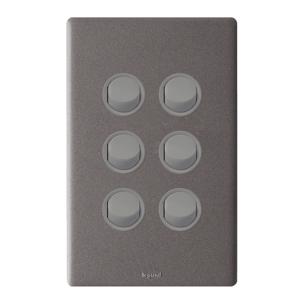 Excel Life – Dedicated plate – Vertical rocker switch – 16AX 2 way single Pole Double Throw – 6 gang – 240V a.c. urban grey