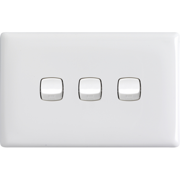 Linea – Horizontal rocker switch – Single Pole Double Throw – 3 gang 2 way 10A 240V a.c. white