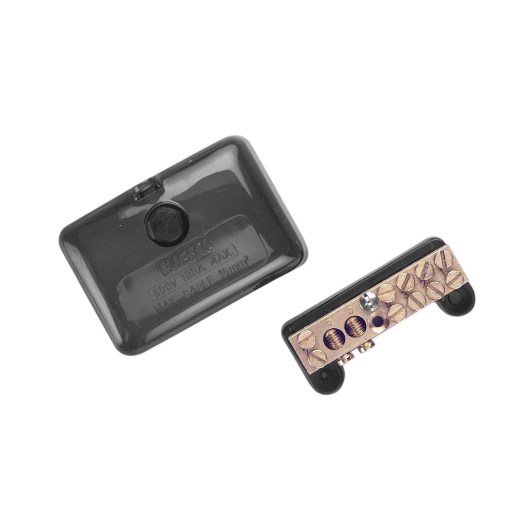 Mini Neutral link, 100 A, 500 V, 7 hole, with cover, back wiring, Black