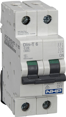 MCB DIN-T6 6kA 2P 10A C CURVE