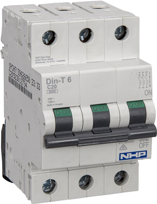 Din-T Miniature Circuit Breaker 6kA, 20 A, 3 Pole