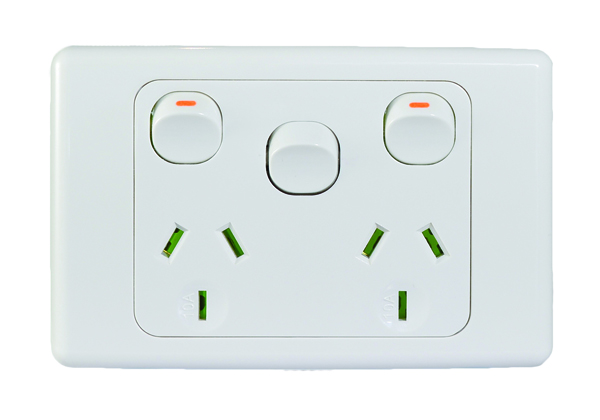 POWER POINT SWITCHED 2 GANG; 10A 250V~; WITH EXTRA SWITCH 16A WHITE