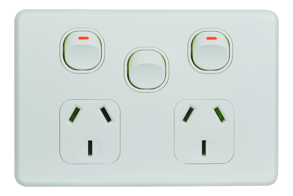 Power Point Switched 2 Gang 10A 250V With Removable Extra Switch Slim 16AX/20A