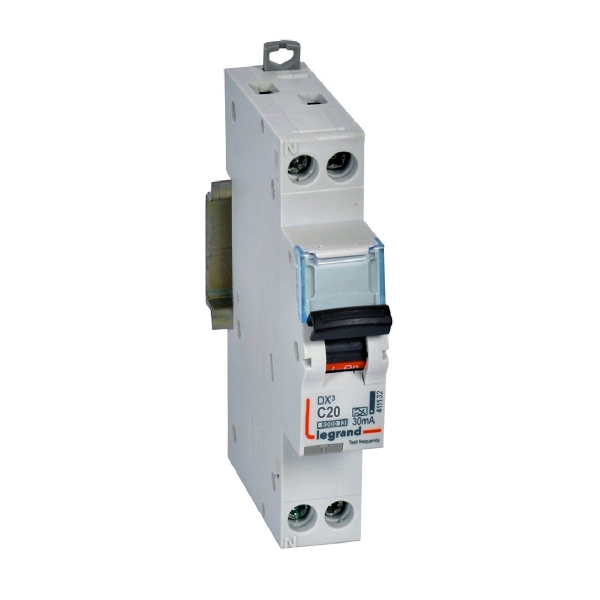 Legrand Residual Current Circuit Breaker with Overload (RCBO) and positive contact indication for control. Gives protection against short circuits and overloads, and isolation of electrical circuits. It protects people from direct and indirect contact and protecting installations from insulation faults. Power supply either from the top or the bottom. This Din mounted combo RCD/MCB now comes in a compact 1 module size to save space in distribution boards on both residential and commercial installations.