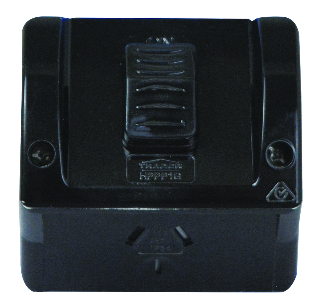 Single Outdoor Weatherproof Power Point IP54 10A 250V Shallow Base Black