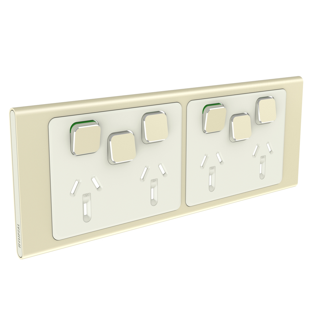 Clipsal Iconic, cover frame, 6 switches & 4 sockets, 10 A, hori, crowne