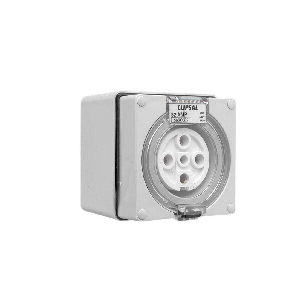 The 56 Series Socket – 5 Pin – 32A – 500V – Grey has a part number of 56SO532-GY, and is part of the Clipsal – 56 Series range of products by Clipsal by Schneider Electric. Measuring at 10.4CM tall, 10.8CM wide, 11.4CM deep, and has a weight of 588G. The barcode of this product is 9311554203733.