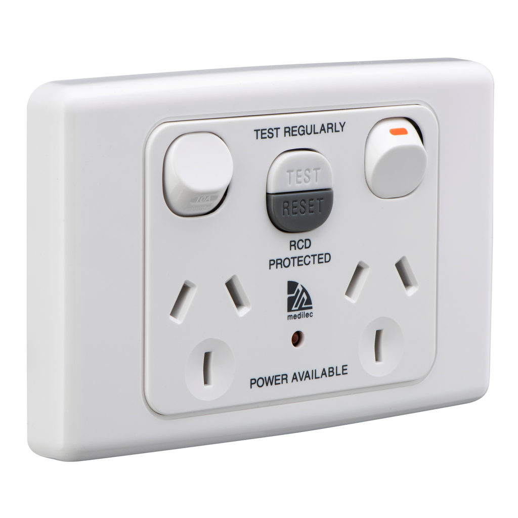 The SWITCHED SOCKET TWIN 10A RCD 10MA has a part number of ML2025RC10-WE, and is part of the Medilec range of products by Clipsal by Schneider Electric. Measuring at 75MM tall, 100MM wide, 20MM deep, and has a weight of 232G. The barcode of this product is 9311554673154.