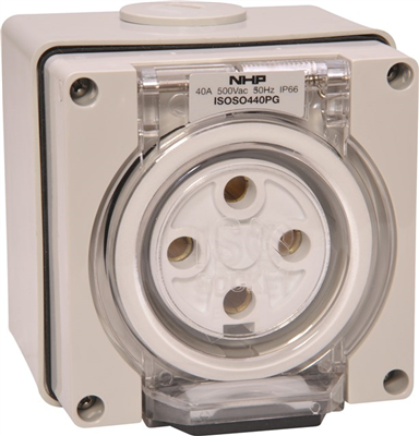 SOCKET OUTLET 4 ROUND PINS 40A 500V AC GREY 63mm BASE