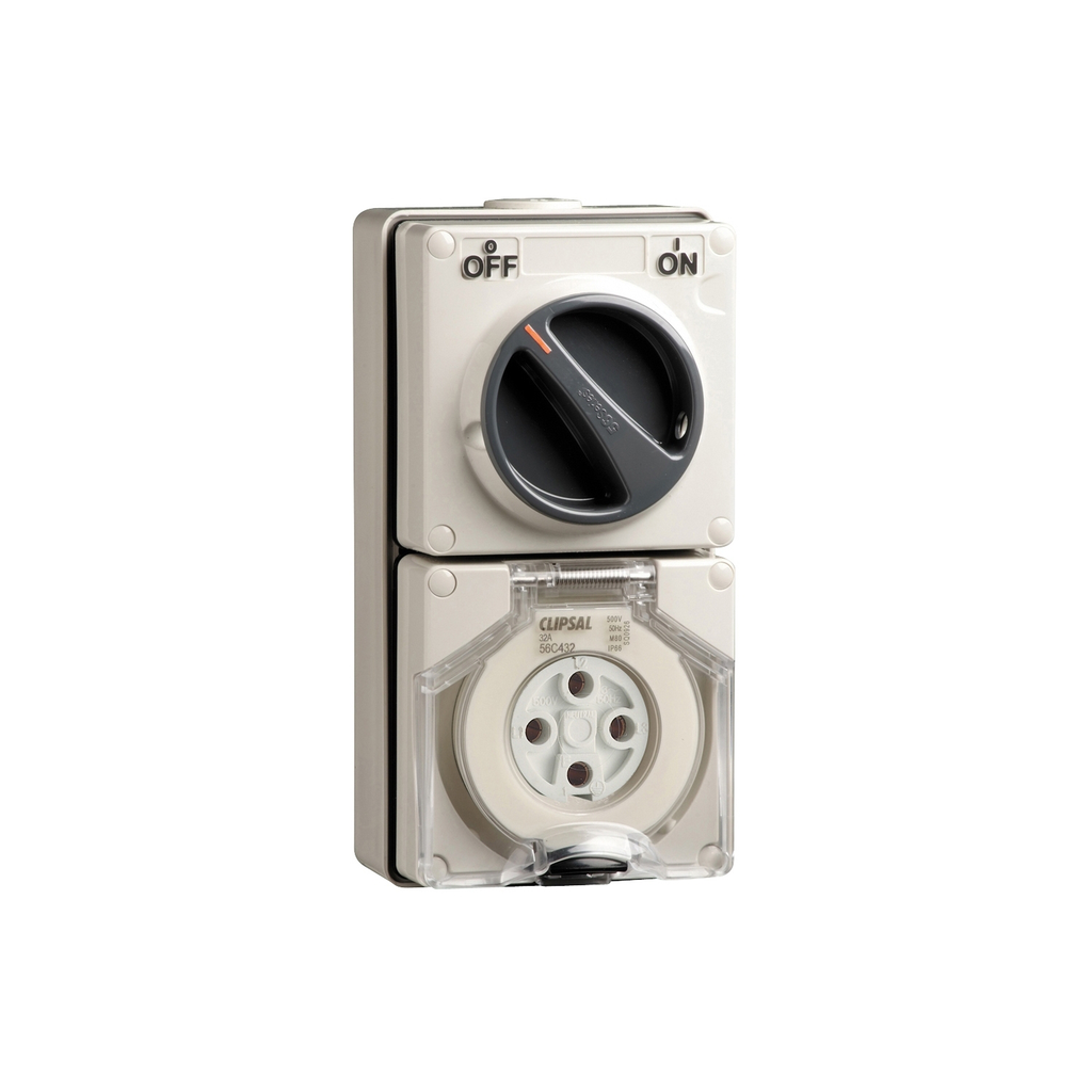 The 56 Series Switched Socket Outlet – 32A – 4 Pin – 3 Pole Switch – 500V – Grey has a part number of 56C432-GY, and is part of the Clipsal – 56 Series range of products by Clipsal by Schneider Electric. Measuring at 11.5CM tall, 10.5CM wide, 20.8CM deep, and has a weight of 1.095KG. The barcode of this product is 9311554198534.