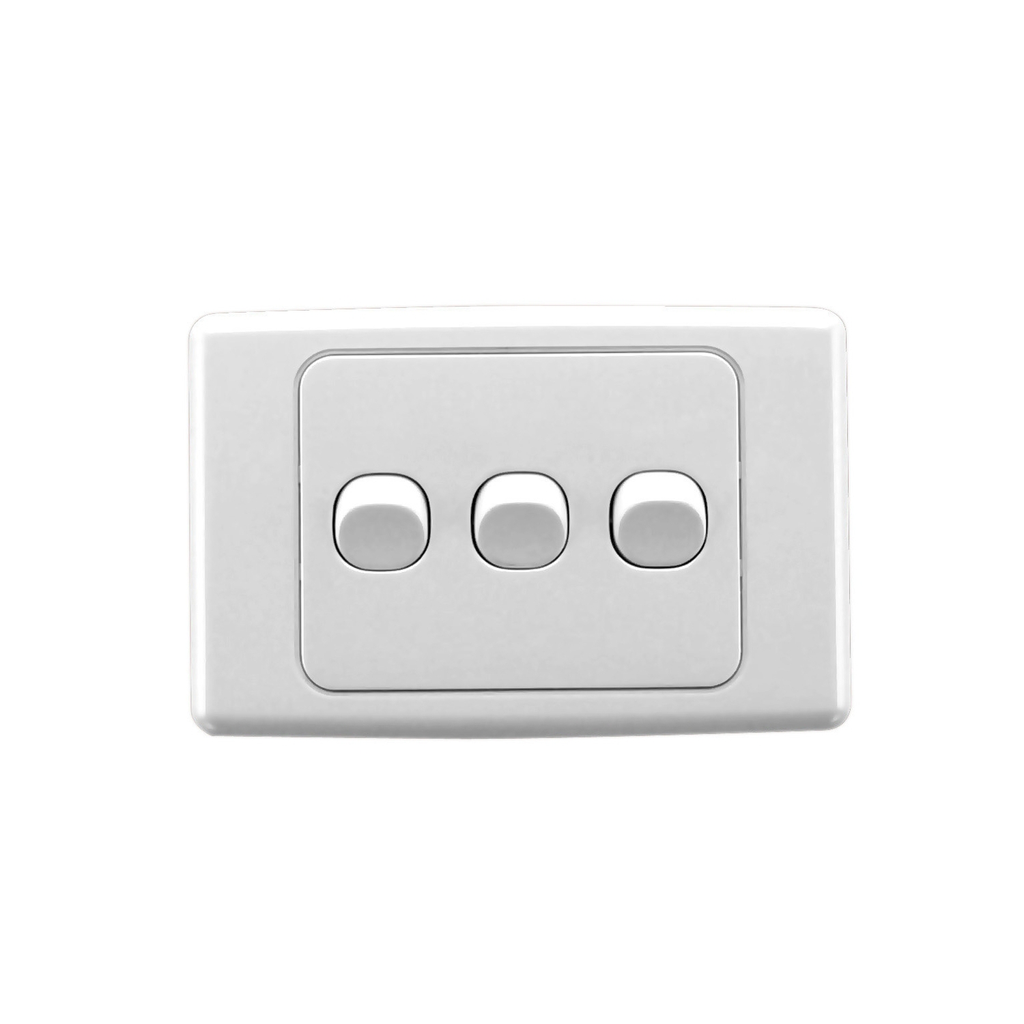 The SWITCH 3G HORIZ 10A 250V has a part number of 2033HA-WE, and is part of the 2000 Series range of products by Clipsal by Schneider Electric. Measuring at 24MM tall, 116MM wide, 76MM deep, and has a weight of 0.092KG. The barcode of this product is 9311554047009.