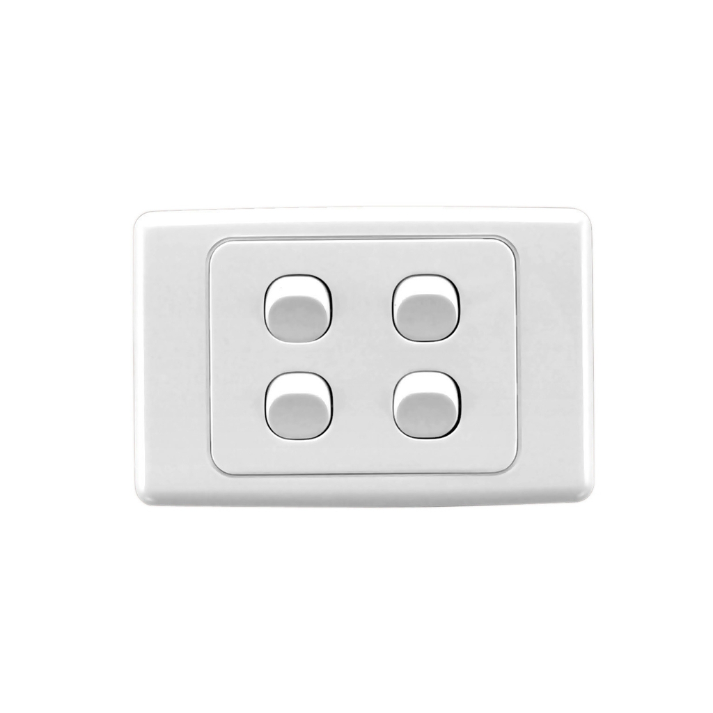 The SWITCH 4GANG HORIZ 10A 250V has a part number of 2034HA-WE, and is part of the 2000 Series range of products by Clipsal by Schneider Electric. Measuring at 24MM tall, 116MM wide, 76MM deep, and has a weight of 0.11KG. The barcode of this product is 9311554047399.