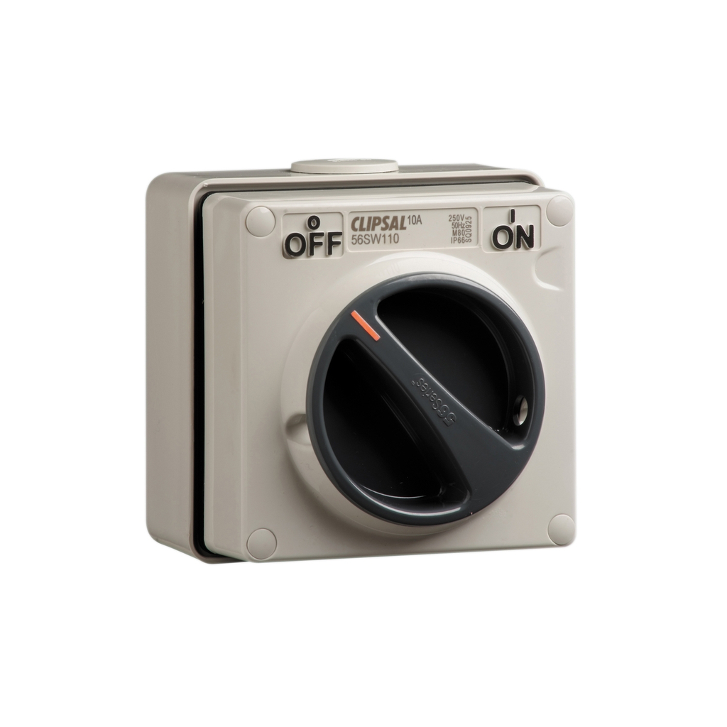 The 56 Series – Switch – 1 Pole – 10A – 250V – grey has a part number of 56SW110-GY, and is part of the Clipsal – 56 Series range of products by Clipsal by Schneider Electric. Measuring at 10.4CM tall, 9.6CM wide, 10.8CM deep, and has a weight of 372G. The barcode of this product is 9311554198770.