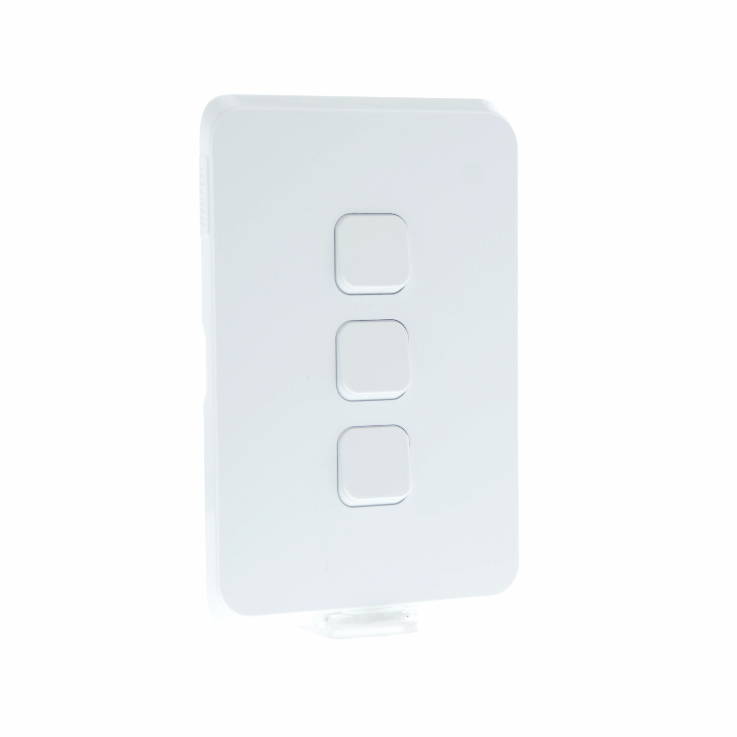 The Switches, Iconic, 3 gang, vertical, 1 or 2 way, 20 A / 16 AX, White has a part number of 3043VA-XW, and is part of the range of products by Clipsal by Schneider Electric. Measuring at 39MM tall, 83MM wide, 125MM deep, and has a weight of 0.107kg. The barcode of this product is 9311554795184.