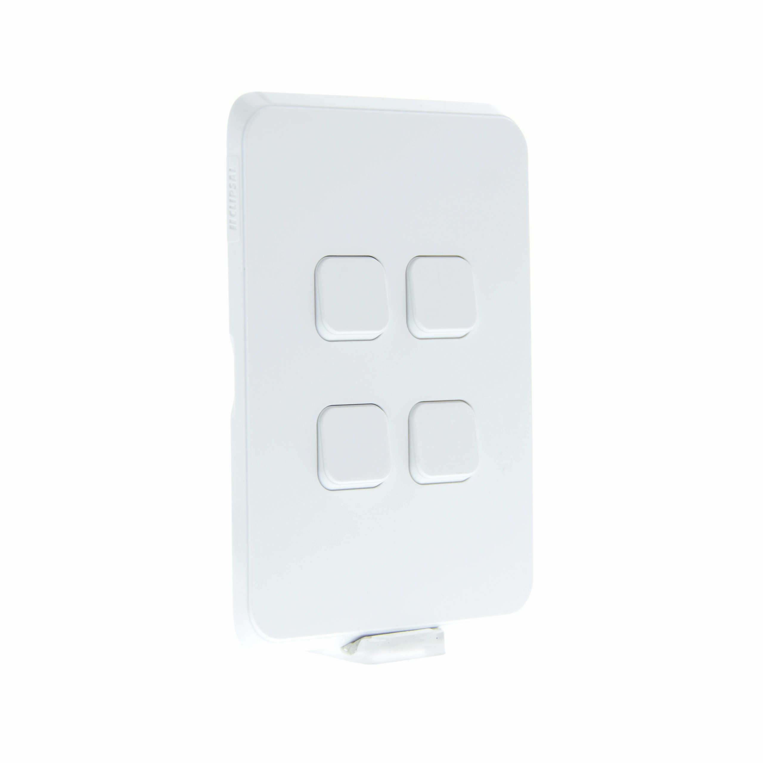 The Switches, Iconic, 4 gang, vertical, 1 or 2 way, 20 A / 16 AX, White has a part number of 3044VA-XW, and is part of the range of products by Clipsal by Schneider Electric. Measuring at 39MM tall, 83MM wide, 125MM deep, and has a weight of 125kg. The barcode of this product is 9311554795191.