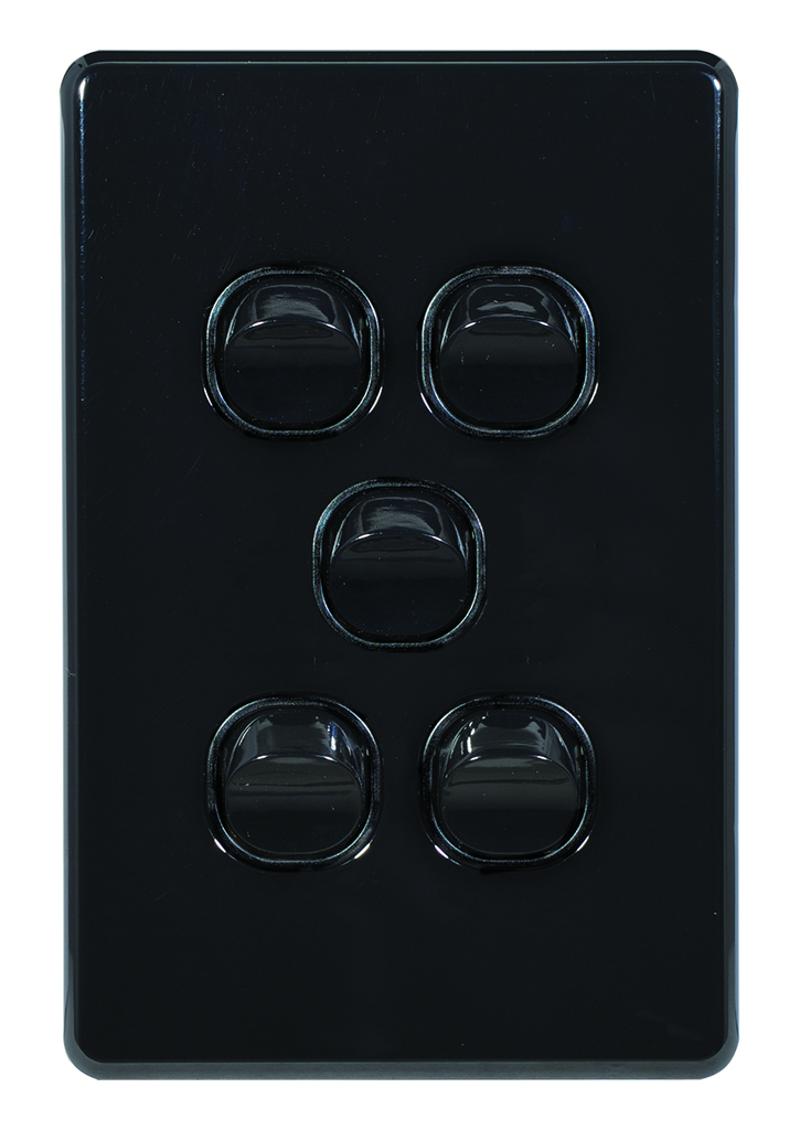 Switch Vertical 5 Gang Slim 10AX/16A 250V Black