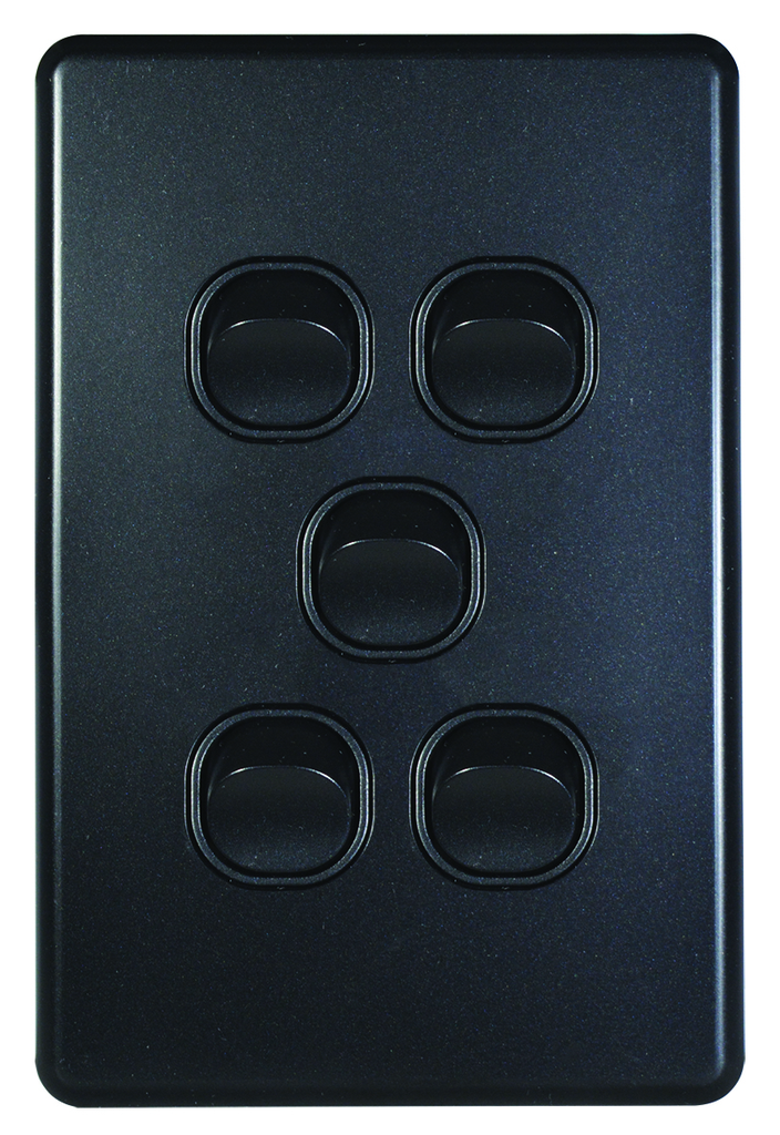 Switch Vertical 5 Gang Slim 10AX/16A 250V Matt Black