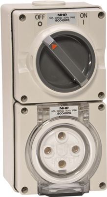 SWITCHED OUTLET 4 ROUND PINS 50A 500V AC GREY 63mm BASE